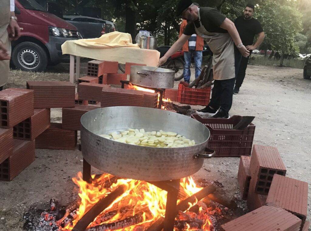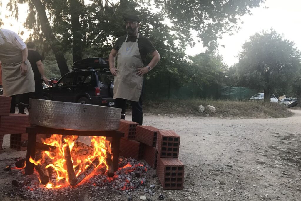 Τα τραπέζια στήθηκαν στο περιβάλλοντα χώρο και τα καζάνια πήραν φωτιά για να ετοιμάσουν τις συνταγές, που ο Γέροντας είχε μαγειρέψει και αναδείξει σε όλον τον κόσμο.