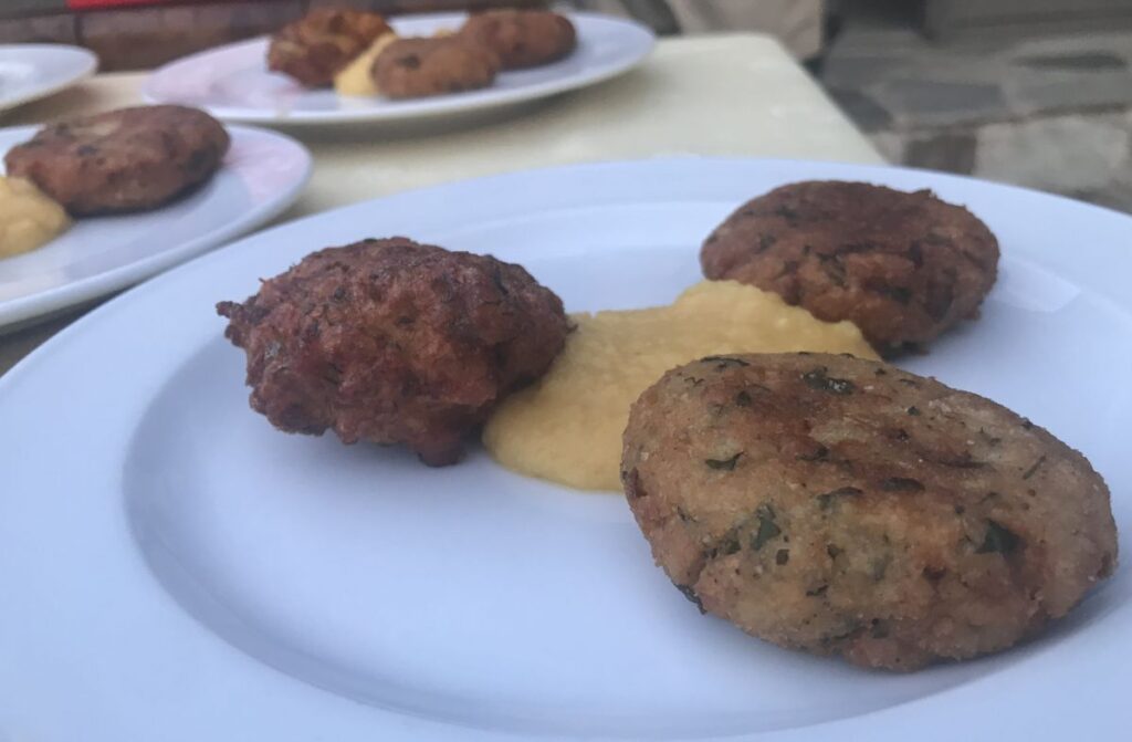 Για πρώτο πιάτο σερβιρίστηκε μία αγιορείτικη τριλογία με φάβα, ρεβυθοκεφτέδες, ψαροκεφτέδες και ταραμοκεφτέδες.