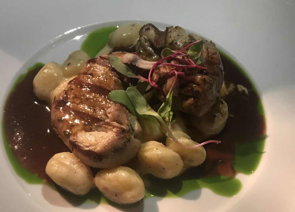 Στο κυρίως ένα ελληνικό πιάτο που έσβησε ότι άλλο είχαμε δοκιμάσει μέχρι εκείνη τη στιγμή. Στην περιγραφή ήταν χοιρινό φιλέτο με νιόκι πατάτας, με κρέμα κρητικής γραβιέρας και φρέσκο θυμάρι. Αν φτάσεις στο Sky Bar και η όρεξη σου είναι για κρέας και όχι για ψάρι, αυτό είναι το πιάτο που πρέπει να δοκιμάσεις. Μαλακό και με νότες ψητού χοιρινό φιλέτο, τραγανά εξωτερικά και κρεμώδη εσωτερικά νιόκι πατάτας δένουν με την πλούσια σε γεύση και υφή κρέμα γραβιέρας. Είναι από τα πιο γευστικά πιάτα με χοιρινό, που έχω δοκιμάσει.
