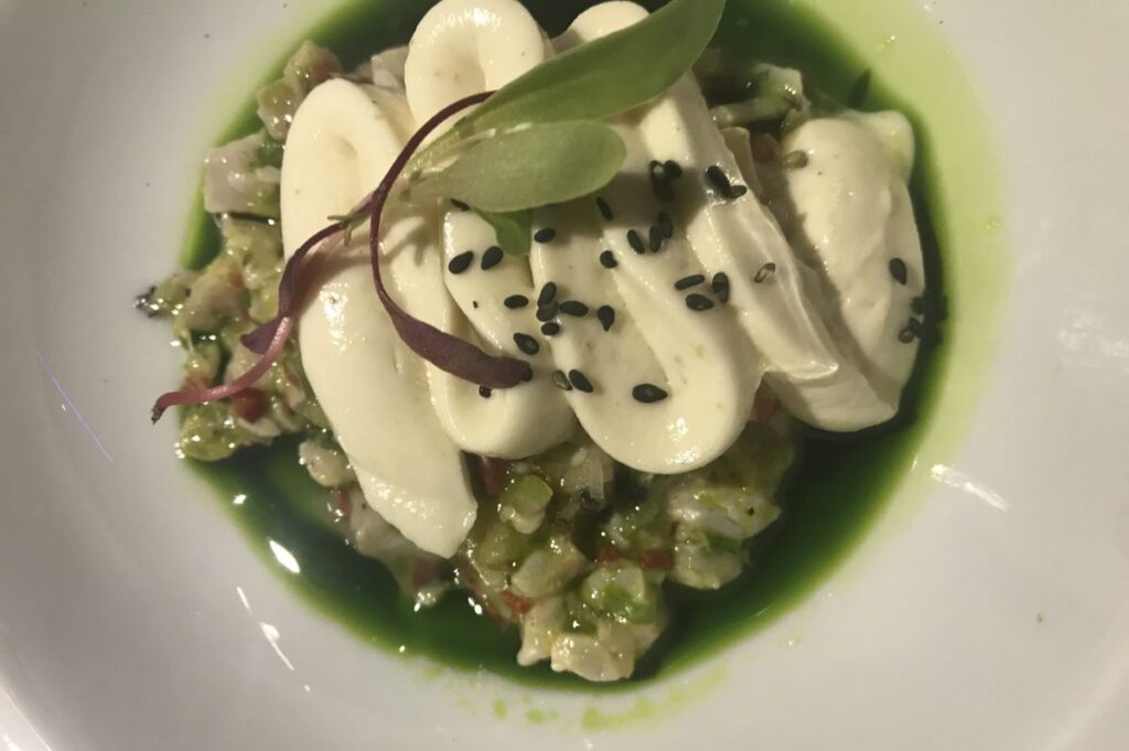 Ακολούθησε Tartare τσιπούρας με λευκό ταραμά, μοσχολέμονο και δυόσμο. Με μία μπουκιά όλη η γεύση της Μεσογείου! Το ψάρι δεν είχε χάσει τη γεύση ούτε την υφή του, ενώ η αλμυρότητα του ταραμά ανέβαζε την εμπειρία σε ένα άλλο επίπεδο.