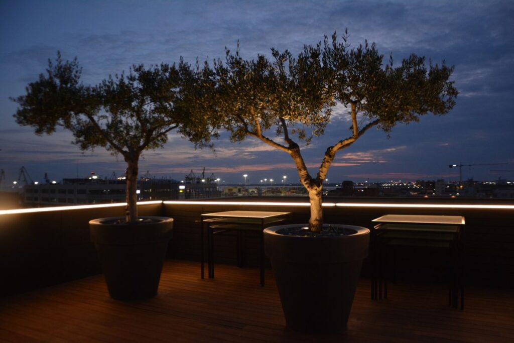 Η minimal urban αισθητική του Met Hotel υποδέχεται τον επισκέπτη, ο οποίος ανεβαίνει με το ασανσέρ στον 7ο όροφο του ξενοδοχείου για να βρει εκεί μία από τις καλύτερες ταράτσες της Θεσσαλονίκης.
