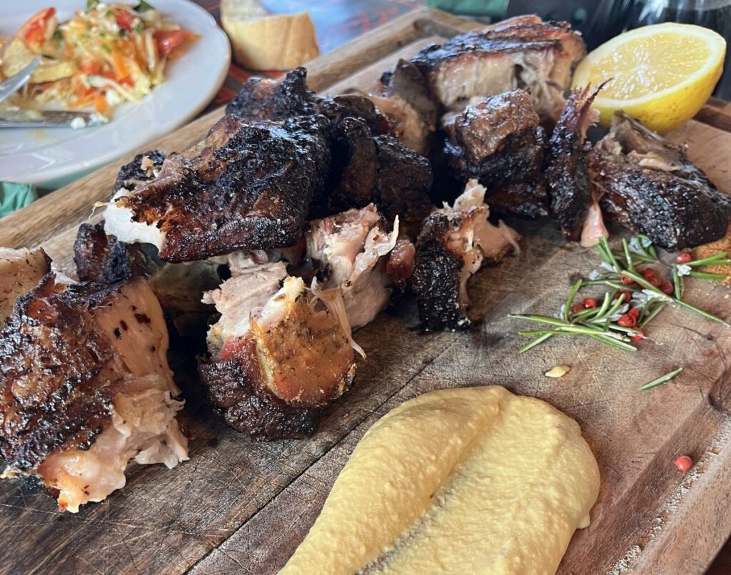 Οι μυρωδιές του μαγειρεμένου στο τζάκι κρέατος γεμίζουν τον χώρο, δίνοντας υπόσχεση για μια αξέχαστη γευστική εμπειρία. Η εικόνα της κατσαρόλας που βράζει πάνω στη φωτιά και οι μυρωδιές από τις συνταγές της γιαγιάς, δίνουν περισσότερη ζεστασιά στον ήδη πολύ ζεστό χώρο της σάλας.