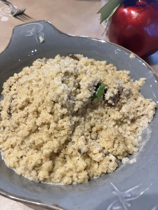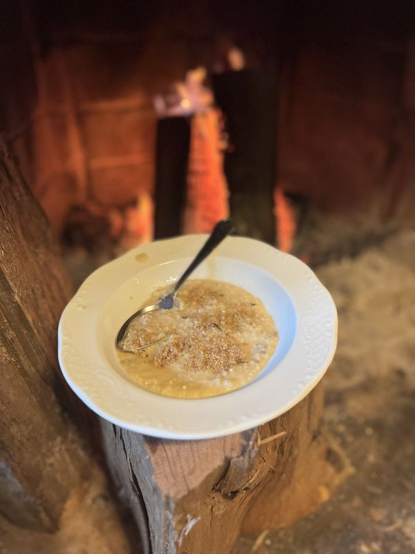 Η μεγάλη έκπληξη ήταν το ρυζόγαλο που μας κέρασε η Ελένη, στο οποίο είχε βάλει αγριομανίταρα και αρωμάτισε με πορτοκάλι. Κρεμώδες, μυρωδάτο και γευστικότατο.