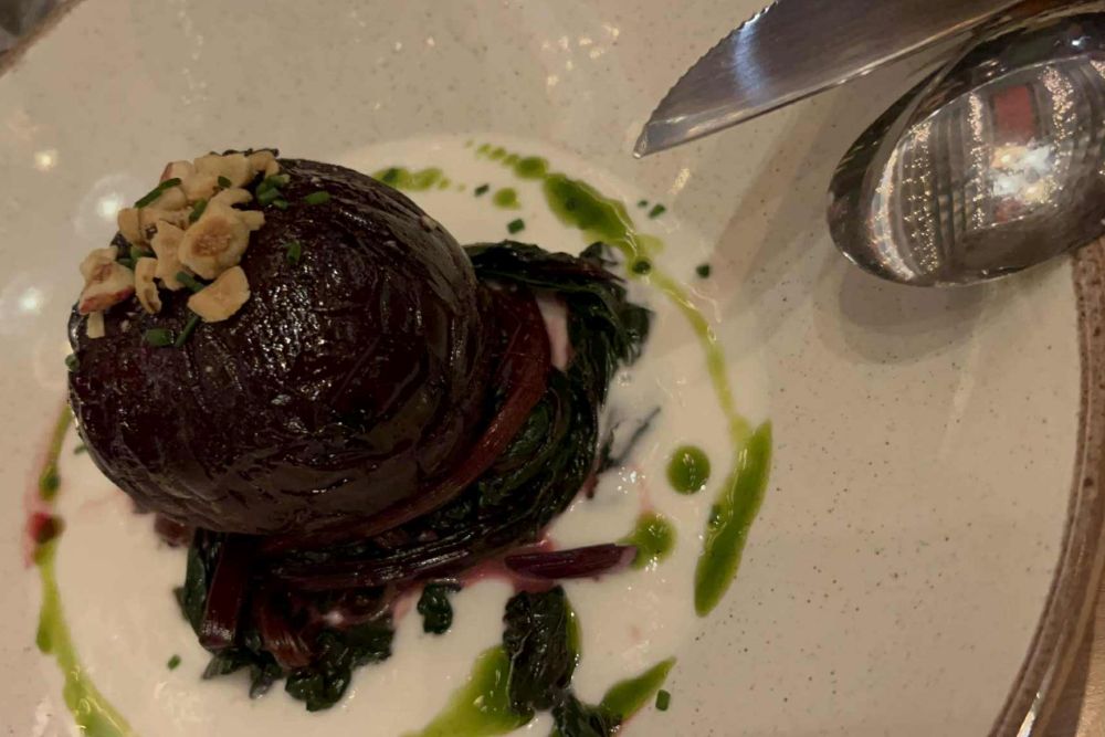 Έτσι, το μπουγιουρντί μεταμορφώνεται σε γέμιση για τραγανά ρολά, τα χειμερινά λαχανικά συναντούν γαρίδες πανέ, ενώ το κοκκινιστό «αναβαθμίζεται» σε μοσχαράκι με μελιτζάνα σε διαφορετικές υφές και σάλτσα κόκκινου κρασιού με ντομάτα. Είναι η ίδια μνήμη, απλώς ειπωμένη με νέο λεξιλόγιο.