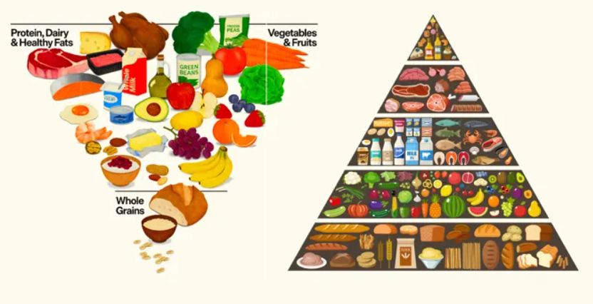 Οι αμερικανικές διατροφικές συστάσεις αναθεωρήθηκαν ριζικά. Το Υπουργείο Υγείας και Ανθρωπίνων Υπηρεσιών (HHS) και το Υπουργείο Γεωργίας (USDA) παρουσίασαν μια νέα διατροφική πυραμίδα στις 7 Ιανουαρίου. Οι οδηγίες τοποθετούν το κρέας, τα πλήρη γαλακτοκομικά, το ελαιόλαδο και τα λαχανικά στην ευρεία κορυφή ενός αναποδογυρισμένου τριγώνου, ενώ τα δημητριακά και τα φρούτα έπεσαν στη βάση (το στενό μέρος).