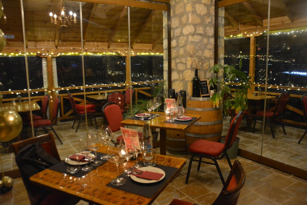 Ο χώρος του εστιατορίου αποπνέει ζεστασιά και φιλοξενία. Το τζάκι γίνεται το φυσικό σημείο αναφοράς, ενώ η πανοραμική θέα προς ολόκληρη τη Θεσσαλονίκη χαρίζει την αίσθηση ότι βρίσκεσαι ταυτόχρονα κοντά και μακριά από τον παλμό της πόλης. Είναι το ιδανικό σκηνικό για να αφεθείς στη μαγεία του συνδυασμού φαγητού και κρασιού.